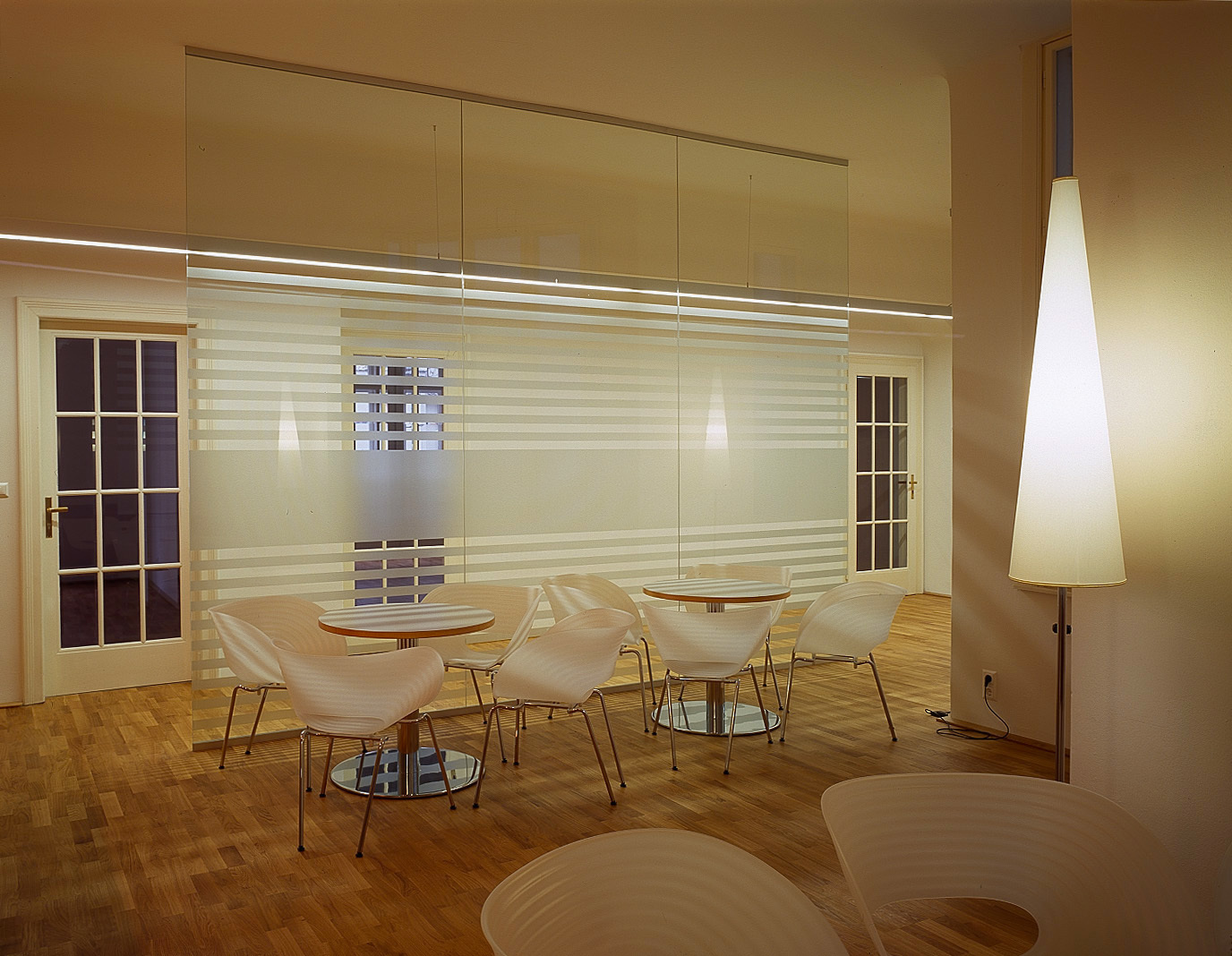 Das gesamte erste Obergeschoss des Gebäudes wurde nach erfolgter Bedarfsanalyse von Wellcon GmbH angemietet. Aufgabe der Architekten war in enger Zusammenarbeit mit den Nutzern die Umgestaltung in ein Zentrum für Prävention und Arbeitsmedizin. Organisatorisch besteht das Zentrum aus einem Behandlungsbereich als Krankenanstalt zu genehmigen und einem Bürobereich. Die angemietete Etage eignet sich dafür, jedem dieser organisatorischen Bereiche einen eigenen Gebäudeteil zuzuschreiben und diese sowohl intern zu verbinden als auch getrennt zu erschließen.