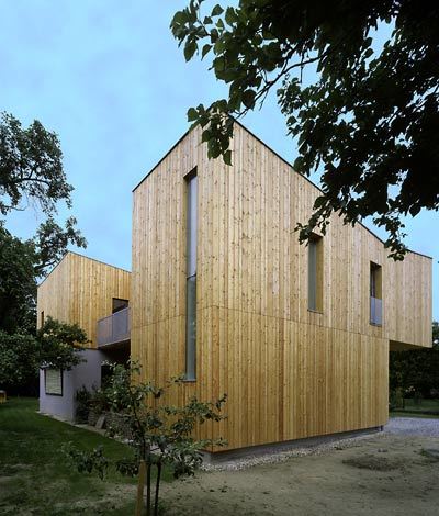 In sanften Weinbergtrassen liegt Mautern an der Steiner Donaubrücke, keine zehn Minuten südwestlich von Krems, nach Wien braucht man eine Stunde. Jedes Wochenende fuhren die Bauherrn die Strecke zur Großmutter, die allein in einem typischen einstöckigen, vor Jahrzehnten gemeinsam gebauten Haus lebt. Inmitten einer locker bebauten Siedlung, von der Straße im Osten durchs zweistöckige Haus des Onkels abgeschirmt, liegt es in einem idyllischen Garten mit 100jährigen Obstbäumen. Nahtlos geht er in den familiären Nachbargrund über: ein riesiges, sicheres Paradies für die Kinder, wo Marillen, Zwetschken, Äpfel, Ribisel und mehr Köstlichkeiten wachsen.