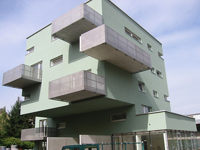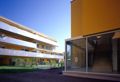Das Freiraum- und Erschließungskonzept bietet eine räumlich sehr ansprechende, verdichtete Mittelachse durch das neue Quartier, wo sich öffentliche und halböffentliche Zonen im Übergang zu den privaten Freibereichen staffeln und überlagern. Die Bebauung setzt sich aus 8 3-5 geschossigen Baukörpern zusammen in denen sich 69 2-4 Zimmerwohnungen befinden. Die Tiefgarage bindet unterirdisch an die Stiegenhäuser der 8 Baukörper an. Die 4 und 5 geschossigen Baukörper werden zusätzlich mit einem Lift erschlossen. (Text: Architekten)