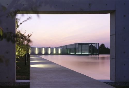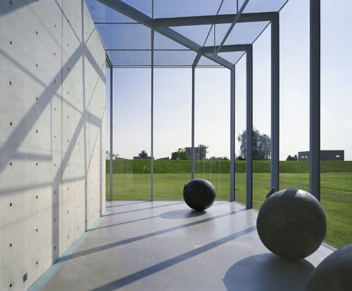 Natur, Architektur, Kunst: Das ist der berückende Dreiklang, der hier die klare Luft durchzieht. Tatsächlich ist Andos Bauwerk nur jüngster und kleiner Beitrag zu einem einzigartigen Kulturraum, der vor mehr als 20 Jahren zu wachsen begann. Sein Kernstück bildet, rund einen Kilometer entfernt, ein knapp 20 Hektar großes Areal, das der Sammler und Immobilienhändler Karl-Heinrich Müller 1983 rund um einen verfallenen Industriellen-Landsitz aus dem 19. Jahrhundert erwarb. Zusammen mit dem Landschaftsarchitekten Bernhard Korte und Künstlern wie insbesondere Erwin Heerich verwandelte er es zum längst international beachteten Museumspark „Insel Hombroich“. Weit gestreut liegen heute in den Auen die geometrisch strengen Ziegelbauten Heerichs, als begehbare Skulpturen im Licht oder als Raum für Müllers reiche Sammlung. Unbehelligt von Aufsichtspersonal finden sich Khmer-Skulpturen neben Corinth-Blättern, Rembrandt-Zeichnungen oder Graubner'schen Farbkissen und, wenn man hinaustritt auf die kiesbestreuten Wege, Enten und Reiher zwischen Krokussen und Kopfweiden.