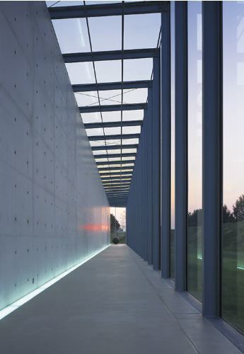 Ruhig zieht die Zeit über dem kargen Betonbogen zwischen Äckern und Weiden. Keine große Geste, schlicht eine Skulptur auf der Wiese längs des schmalen Asphaltweges, so selbstverständlich, dass man darin kaum das Portal zu einem Museum erkennen mag. Noch weisen daher Zettelchen den Weg vom Parkplatz herüber; doch sie werden verschwinden müssen, unbedingt: Tadao Andos neues Gebäude für die Langen Foundation in der weiten, flachen Landschaft bei Neuss am deutschen Niederrhein ist zu still, um die Gäste in Scharen anzuziehen, und zu asketisch, zu konzentriert, um derlei Unreinheiten zu verzeihen. Darin liegt die Faszination dieses Baus und, vielleicht, seine Bürde.