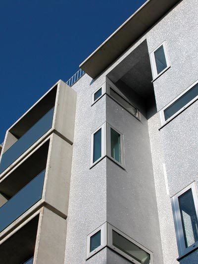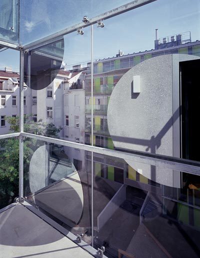 Elegant schloss Architekt August Sarnitz die Baulücke am Laubeplatz in Wien-Favoriten: Spiegelflächen von Eva Schlegel geben Schauloggien zum Park und Wintergärten im Innenhof spezielles Flair. Auf offene Transparenz setzt das Haus der querkraft-Architekten.