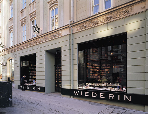 Ein Asphaltboden, schwarze Wände, Möbel und Regale, eine schwarze, leicht spiegelnde Decke und eine perfekte Lichtregie sind die Zutaten, um bei Wiederin in Innsbruck die Bücher zum Leuchten zu bringen. Doch der Verkaufsraum ist keine schummrige Höhle, sondern trotz der Schwärze paradoxerweise hell, freundlich und offen gegenüber dem Straßenraum. Zur Fußgängerzone öffnet sich der kleine Laden mit zwei großen Schaufensterscheiben, die auf der Außen- und Innenseite der tiefen Fensterrahmen als Ablageflächen dienen und so die gläserne Grenze zum Stadtraum optisch aufheben. Rainer Köberl hat bereits bei seinem 2004 eröffneten MPreis-Supermarkt die Waren als Fetische in einer schwarzen Höhle präsentiert. Dort, im Untergeschoss des neuen, an den italienischen Razionalismo der 1930er- Jahre erinnernden Bahnhofs von Innsbruck (ALBUM, 30. 04. 04) musste Köberl die Architekturambitionen der Tiroler Supermarktkette zum ersten Mal im Rahmen einer reinen Innenraumgestaltung verwirklichen. Die Buchhandlung Wiederin, auch sie erhielt heuer den Architekturpreis des Landes Tirol, ist noch konsequenter auf die Waren und nichts anderes fokussiert. Nicht ohne Grund lieben viele Architekten die Nachtansichten ihrer Gebäude so sehr, bei denen der Inhalt der baulichen Hülle in den Vordergrund tritt. Bei der Buchhandlung wird dieses Bild zum Dauerzustand, egal ob gerade Tag ist oder Nacht.