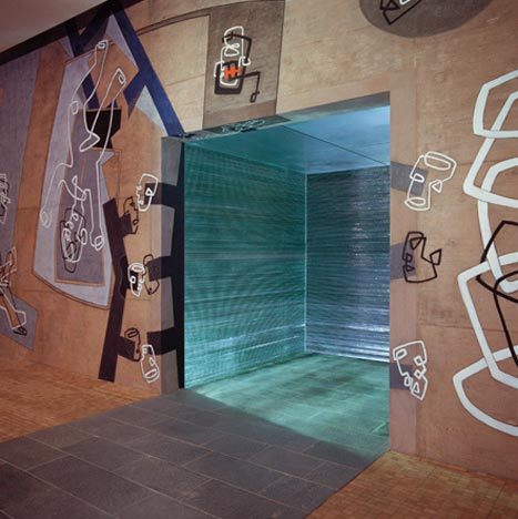 Der Durchbruch in der großen Wand führt in das räumliche Zentrum des Baus, einen kristallinen Kubus, dem Ort der Aufbahrung an exponierter Stelle. Der 2,40 x 2,40 m große Glaskubus, eine Übertragung des Himmlischen Jerusalem, der Stadt mit gleichen Maßen, kragt als ein sich selbst tragender Körper in den Außenraum. Er setzt sich aus 600 geschichteten Glasstreifen in der Länge von 2,4 m, der Stärke von 12 mm, sowie einer Breite von 6cm zusammen. In seiner Gesamtheit gibt er den Eindruck eines strahlenden Kristalls wider. Die Künstler legen mit diesem Kubus einen neuen Raumtypus fest, der in seiner liquiden Materialität den Toten in ein helles Licht rückt. (Gekürzter Text: Gabriele Ruff)