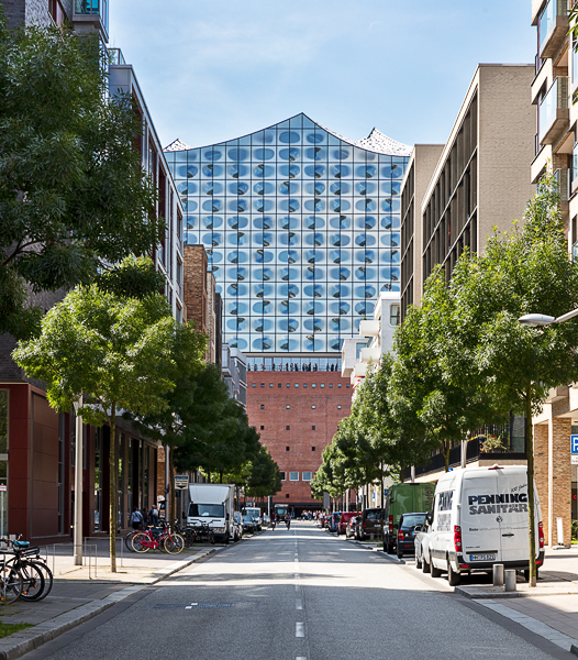Hierfür bildet der zum Parkhaus umgenutzte Speicher die Basis, auf dem ein hoher, gläserner Aufbau für ein Konzerthaus thront. Zur Finanzierung des Projekts sollte der Aufsatz mit kommerziellen Nutzungen wie einem Hotel und Wohnungen angereichert werden. Bei der ursprünglichen Planung galt, so Gérard, der Grundsatz, dass nur so viele neue Lasten auf den Kaispeicher aufgesattelt würden, wie vorher in ihm lagerten, um eine aufwendige und kostenträchtige Verstärkung des Tragwerks zu vermeiden und den Erhalt des Speichers zu gewährleisten. Doch die Stadt Hamburg, die die Investoren 2004 aus dem Architektenvertrag herauskaufte, um das Projekt in Eigenregie zu realisieren, vergrößerte aus kaufmännischen Erwägungen den kommerziellen Mantel erheblich. Laut Gérard hatte sich die zu bauende Fläche innerhalb kurzer Zeit um satte 43 % vergrößert.