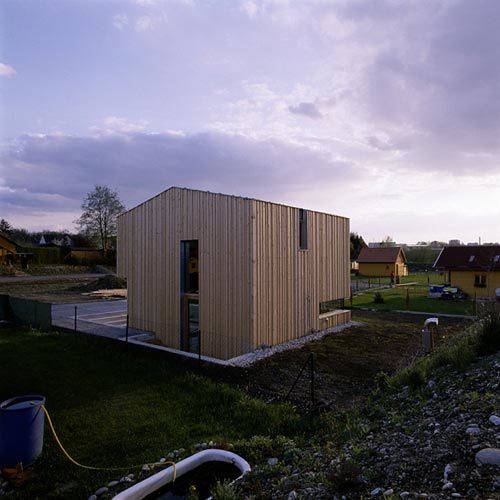 Fein säuberlich reihen sich gleich große Parzellen an die Straße. Auf jeder steht ein Häuschen, meist aus Holz, immer maximal 35 Quadratmeter groß, kein First über 4,25 Meter Höhe. Mehr erlaubt die Vereinsordnung nicht. Onkel Fred war's recht, Gernot Hertl kam jedoch ordentlich ins Tüfteln: „Bei so einem kleinen Haus ist der Passivhausstandard katastrophal. Das Verhältnis von Nutzfläche zu Außenhülle ist sehr ungünstig, die extreme Dämmstärke schränkt ein.“ Mit 37 Zentimeter Stärke blieb die Wand im Rahmen. Raffiniert hoch und quer geschraubte Fichtenlatten verleihen ihr einen dezenten silbergrauen Schimmer.