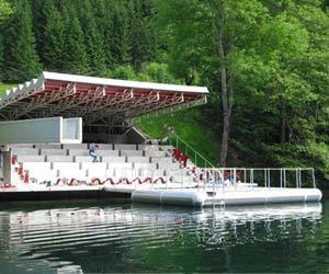 Wenn Freitag kommender Woche (8. Juli) die diesjährigen Lunzer Sommerspiele eröffnen, werden die Besucher ohne Pölsterchen und Decken im Strandbad - dem traditionellen Austragungsort - erscheinen, weil sie nun in einem ganz außergewöhnlichen Konstrukt am Wellenrand Platz nehmen können. Luxuriös, sozusagen. Viele von ihnen werden sich außerdem schon eine Weile vor Programmbeginn einfinden, um keinesfalls ein kleines Vorspektakel zu versäumen, das nicht selten vom Bürgermeister höchstelbst eingeleitet wird: Herr Ploderer versenkt mit geübtem Griff eine handelsübliche Wasserpumpe im See, wirft sie an, und nach etwa einer Viertelstunde beginnt sich die neue Seebühne Lunz langsam aufzufalten wie das Dach eines Cabriolets.