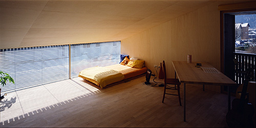 Alle Räume erhielten größere Fensteröffnungen und dadurch mehr Licht. Die Kinderzimmer im Obergeschoß wurden so weit wie möglich erweitert und bekamen eine durchgehende, tiefliegende Fixverglasung, was die Räume optisch und durch die spezielle Lichtführung noch mehr aufwertet. Insgesamt wurde die Raumaufteilung funktionell gestrafft, und alle transformierten Bereiche sind mit einer Holz-Innenhaut ausgekleidet. Die Kinderzimmer können durch den Umbau miteinander verbunden und in Zukunft auch als eigene Einliegerwohnung genutzt werden.