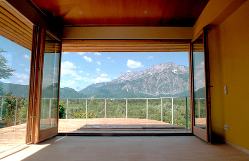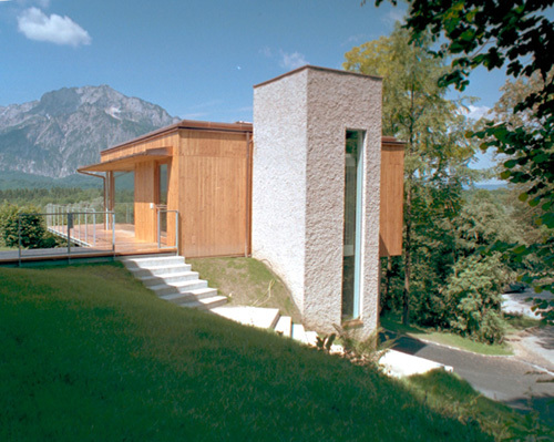 Das Privathaus auf eigenem Grund ist – nicht nur hierzulande – die begehrteste Wohnform, zugleich die ökologisch und raumplanerisch am wenigsten vertretbare. In diesem Dilemma sind Beispiele wichtig, die nicht den Flächenfraß weiter fortsetzen, sondern vorhandene Strukturen nützen und „nach innen“ verdichten. Das Haus in Puch nützt auf kleinster Fläche den schwierigen, felsigen Abschnitt einer bereits bebauten Parzelle, schafft für die betagte Mutter des Bauherrn (2003 verstorben) ein ganz exquisites „Austraghaus“ im Nahbereich des bestehenden Familienhauses. Die spezifische Situation ist wohl nicht generalisierbar. Dennoch ist hier die Integration der Generationen und auch die bauliche Finesse einer ressourcenschonenden und nachhaltigen Wohn-Raumverdichtung in allen Aspekten als vorbildlich zu bezeichnen. (Jurytext Architekturpreis Land Salzburg 2002, Otto Kapfinger)