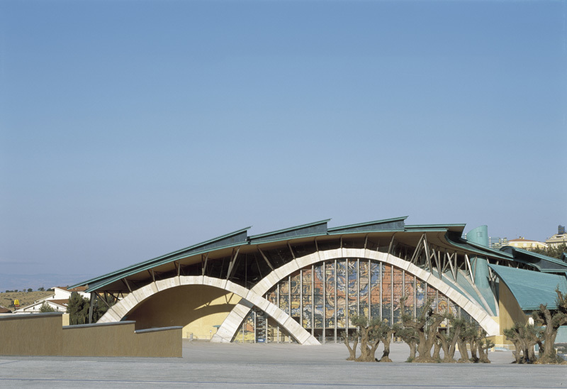 (sda) Nach zehnjähriger Bauzeit ist unlängst im apulischen Dorf San Giovanni Rotondo eine der grössten Kirchen der Welt eröffnet worden. Das von Renzo Piano entworfene Gotteshaus ist Padre Pio geweiht, der von Millionen Katholiken als Heiliger verehrt wird. Es bietet Platz für 7000 Gläubige, und der Vorhof fasst nochmals 40 000 Menschen. Piano hat sich für die gut 50 Millionen Franken teure Konstruktion spektakuläre Formen ausgedacht: Über pompösen Bögen aus Naturstein und Stahl - darunter der mit 50 Metern Spannweite grösste Steinbogen der Welt - öffnet sich ein weit gefächertes Dach in Richtung Kirchplatz. Bei der Kirche von San Giovanni Rotondo handelt es sich um den ersten Sakralbau des renommierten Architekten aus Genua, der sich bisher vor allem mit Museumsbauten, darunter das Centre Pompidou in Paris, die Fondation Beyeler in Riehen bei Basel und das der Vollendung entgegengehende Klee-Zentrum in Bern, einen klingenden Namen geschaffen hat.