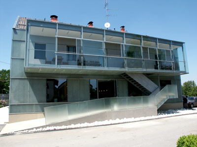 Die Räume wurden von allen Dekorationen befreit, der Eingang wurde in die Mitte verlegt und führt auf eine Bar, die schon von außen als Blickfang wirkt und die ursprünglich getrennten Hausbereiche optisch und funktionell mit einander verbindet.