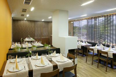 Die Verwendung eines für dieses Lokal entwickelten Holzstuhles zeugt von des Architekten Referenz an einfache und klare Formen und die Spiritualität, die diesen innewohnt.