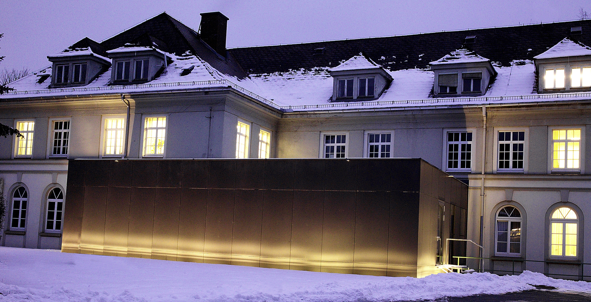 Die Gegenwart, reflektiert in einfachster geometrischer Form des Zubaues, sucht keinen Wettbewerb mit der Vergangenheit sondern unterstreicht kontrastierend deren Qualitäten.