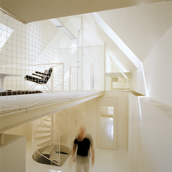 Hat sich INNOCAD im Erdgeschoss und im ersten Obergeschoss selbst Raum für ihre Architekturproduktion geschaffen - im Erdgeschoss in der räumlich ansprechenden Verschränkung mit dem Altbestand, sind die Appartments flexibel konzipiert - mit einem Anspruch an Öffentlichkeit des „Users“ mit Wunsch nach städtischem Leben bei gleichzeitiger Rückzugsmöglichkeit zum Hof.