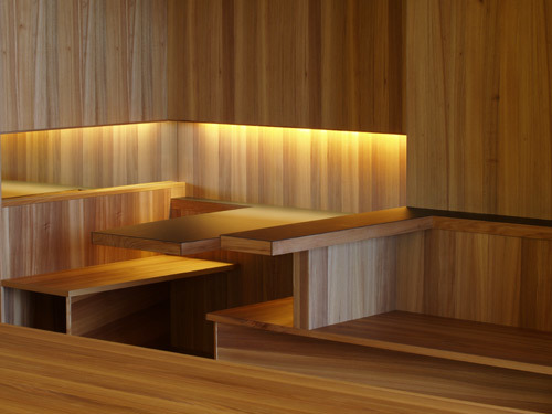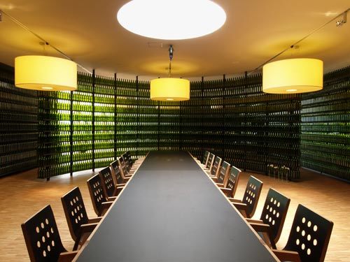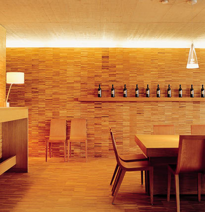 Das bestehende Gebäude war bald zu klein, so wurden die ehemaligen Verkost- und Verkaufsräumlichkeiten 2005 in Büros umgewandelt und die Funktion in einen Zubau transferiert. Der erneut für den Innenraum zuständige Architekt Andreas Burghardt lädt hier in ein schneckenförmig begehbares Weinregal und zur Degustation in holzvertäfeltes Ambiente, das durch eine möbelartige Stiege fortgesetzt im Zubau von Ingenos – einem hellen, luftigen, mit Rankpflanzen bewachsenen Pavillon – mündet. Die Dependance Schlafgut und das Restaurant Saziani runden das Weingut ab: ein traditionelles Familienunternehmen, von den Söhnen – Önologe der eine, Restaurantleiter der andere – professionell weitergeführt. (Text: Marion Kuzmany)