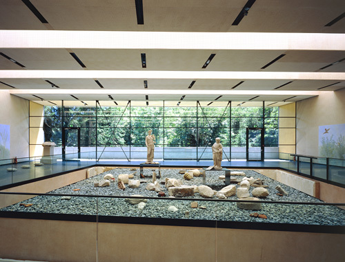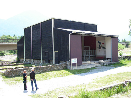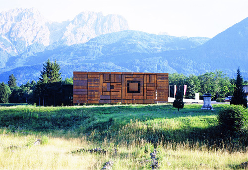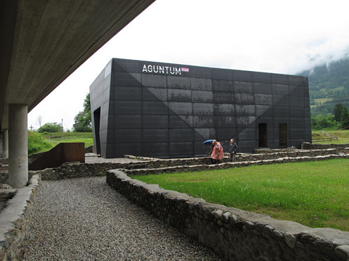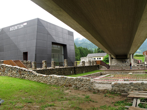 Die Bedrohung dieses Standorts durch Überschwemmung und Vermurung durch den Wildbach machte ein Abweichen von dem ursprünglichen Konzept notwendig und einen Neubau an einem - nach den Vorgaben der Behörde für Wildbach- und Lawinenverbauung ausgewählten - Standort unumgänglich. Die „verfeinerte“ Kiste des damit entstandenen Archäologischen Museums Aguntum beherbergt nun auf ca. 1.200 m² das in Sicherheit gebrachte rahmenförmige Marmorbecken des Atriumhauses in dem von Tageslicht durchfluteten Südteil und eine sachliche Präsentation der archäologischen Sammlung mit einigen inszenatorischen Elementen in der dunkleren Mitte.