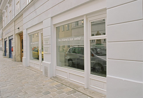 Ihre Praxis sollte ein entspannter Ort ohne Schwellenängste sein, Termine unbürokratisch direkt vereinbar, beschloss eine auf Kinder spezialisierte Augenärztin. Also suchte sie ein leeres Geschäftslokal im Erdgeschoß. Gleichsam in der Auslage für jeden sichtbar, wollte sie hier mit einer offenen, barrierefreien Ordination an Umgebung und Patienten ein einladendes Signal senden. In einem zweistöckigen Biedermeierhaus in der Albertgasse entdeckte sie einen verwaisten Laden, der einige Branchenwechsel hinter sich hatte. Die Besitzer freuten sich über mehr Kinder und Leben im Haus, sie mietete sich ein, ließ sich von der Zeichnerin Reinhilde Becker ein fröhliches Logo entwerfen - und hatten damit ihre Architekten gefunden: Reinhildes Schwester Eva Becker und Christa Stürzlinger von LOOPING architecture.