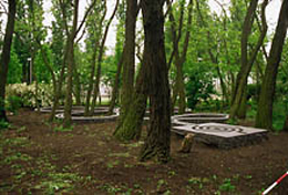 Mit dem stillen Auftakt haben sich die Ausstellungsmacher ganz nach der Architektur gerichtet. Im Weiteren legten sie diesen Willen zur Beschränkung ab. Schon dem «Memory Void», einem jener hermetischen Betonschächte, die das Gebäude durchschlagen, glaubte man, einen Inhalt geben zu müssen: Die Installation «Shalechet» (Gefallenes Laub) des israelischen Künstlers Menashe Kadishman besteht aus 10 000 Eisenscheiben am Boden: 10 000 Gesichter mit weit aufgerissenen Mündern. Das Kunstwerk wirkt geschmäcklerisch und konterkariert den von der Architektur beschworenen Verlust.