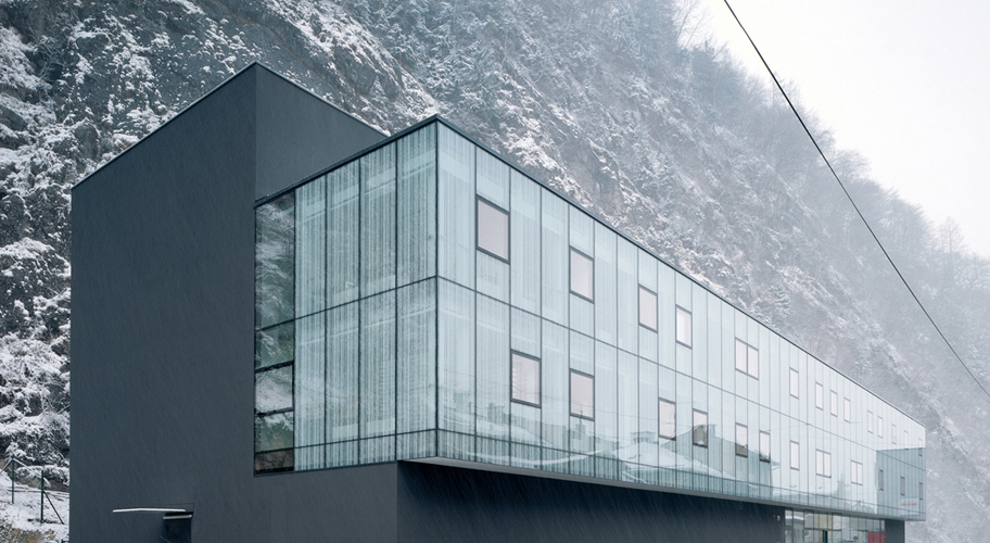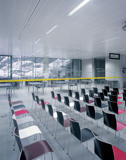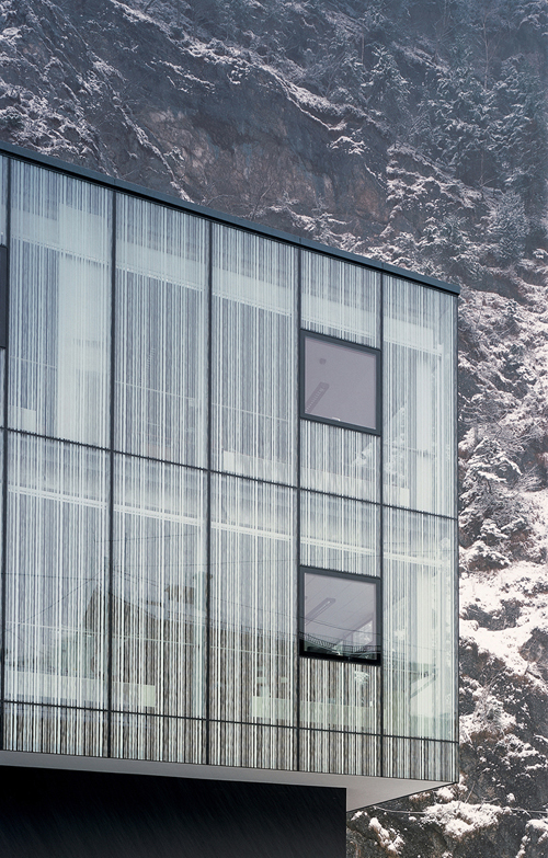 Die architektonische Umsetzung der drei unterschiedlichen Öffentlichkeitsgrade wird in der Wahl des Materials sichtbar: Beton für den geschlossenen Speicherbereich, Glas für den öffentlichen und litexbedrucktes, halbtransparentes Glas für den halböffentlichen Bereich. Durch diese optische Durchlässigkeit entstehen Blickbeziehungen zwischen Glockengasse und Kapuzinerberg und eine attraktive Eingangssituation.