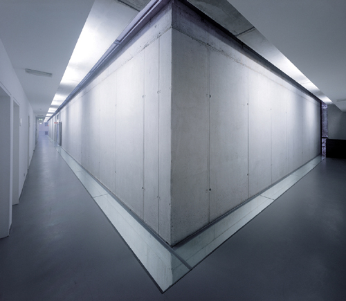Die reduzierten Formen, die beruhigende Lichtführung und die zurückhaltenden Materialien und Farben sollen einen kontemplativen Hintergrund für die Auseinandersetzung mit den Archivalien fördern. (Text: Architekten)