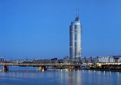 Einige städtebauliche Überlegungen Podreccas waren sicher richtig: etwa daß der Turm nicht einfach parallel zur Donau steht, sondern schräg, sodaß der Blick auf die Donau eindeutig attraktiver ist; gleichzeitig wird dadurch auch der Blick in Richtung Turm, auf seine schlanke „Hüfte“, zu einem bescheidenen optischen Vergnügen, weil da etwas nicht einfach nur plump in die Höhe ragt.