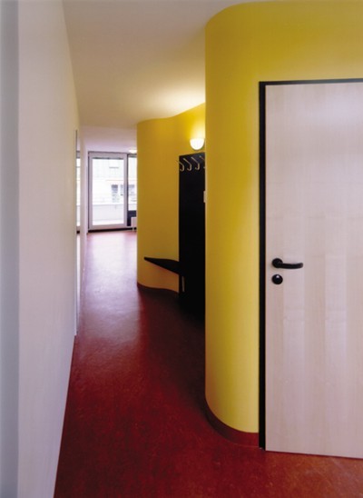 Wie gesagt, im Straßenbild ist das Haus ein Highlight. Und wenn man hineingeht, dann spürt man auch gleich, daß es nutzerfreundlich ist. Es läßt sich ja in Wirklichkeit mit den einfachsten Mitteln echte Qualität erzielen. Ein wenig plastisch ausgeformte Zugänge zu den einzelnen Wohneinheiten, farbliche Akzente - schon sind alle glücklich. Wir haben damit eine wunderbare Visitenkarte zur Hand, die alle ausländischen „Erasmus“-Stipendiaten weiterreichen werden.