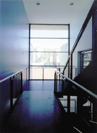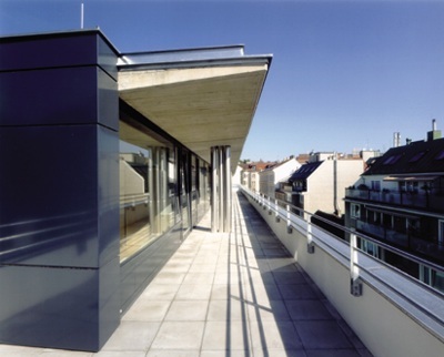 „Gästehaus“ soll heißen: Studentenheim. Ein Studentenheim durchwegs für Ausländer, die ihr „Erasmus“-Jahr in Wien absolvieren. Gleich vorweg: In diesem Haus können sie das gut. Denn unter dem nüchternen Nutzungsaspekt betrachtet, kann man ohne weiteres postulieren, daß die Wohnsituation in der Tigergasse angenehm ist. Da teilen sich im südlichen Trakt zwei Zimmer in einen Gemeinschafts- bereich, im nördlichen vier Zimmer; es gibt einige Zwei-Bett-Zimmer, denn - wie ich mir habe sagen lassen - besonders japanische Studenten wohnen gern zusammen. Und es gibt Freibereiche an der Hofseite - im Terrassengeschoß von besonders großzügigem Zuschnitt -, die allen Bewohnern zugute kommen.