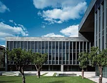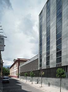 Beziehen sich diese Curtain walls auf den Arkadenhof der Kaserne, so spiegeln sich die starren äusseren Fensterachsen des alten Teils in den hermetischen Strassenfassaden des Neubaus, die mit ihren vertikalen Fensterbändern einem übergeordneten Kompositionsschema gehorchen und dadurch die wahre Höhe des Gebäudes verschleiern. Eine der Quellen dieser unterkühlten Flächigkeit ist zweifellos das 1972 von Josep Coderch errichtete Institut Français in Barcelona. Das Spiel der positiven und negativen Volumen sowie die sicheren Proportionen hingegen verweisen auf Alejandro de la Sotas Justizpalast in Gerona. Wie diese grossen Vorbilder suchen auch Cruz & Ortiz mit ihrer - trotz funktionalistischen und rationalistischen Akzenten - neutralen Sprache nach neuen Möglichkeiten einer in der Moderne wurzelnden Architektur.