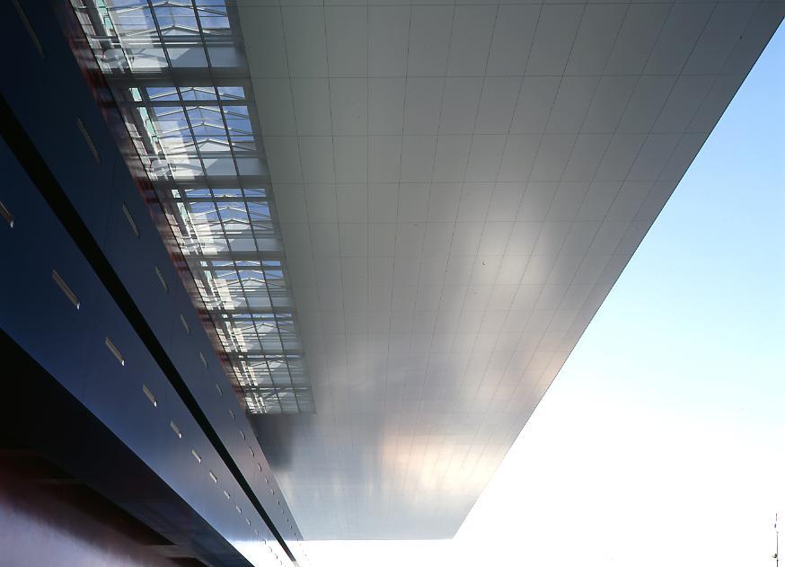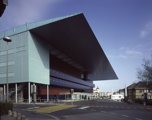 Wie eine messerscharfe Klinge schwebt das rund 100 mal 100 Meter grosse Dach über den drei auf den See ausgerichteten Kulturbauten und dem quer dazu gestellten Betriebsgebäude. Die durch das weit auskragende Dach verschattete Hauptfassade erscheint vom Schweizerhofquai aus wie ein schwarzes Loch im Uferpanorama - oder wie ein monolithischer, aus den Weiten des Alls auf die Erde gefallener Fremdkörper, den man in seiner enigmatischen Abgehobenheit eher im Grossstadtdschungel von L. A. erwarten würde als im pittoresken Weichbild von Luzern. Dabei hat sich der Meister aus Paris in diesem Werk, das zweifellos die Quintessenz seines bisherigen Schaffens darstellt, ganz gezielt mit der Stadt, dem See und den Bergen auseinandergesetzt und zu einer Lösung gefunden, die je nach Licht und Witterung industrielle, nautische, kosmische oder gar sakrale Assoziationen weckt.