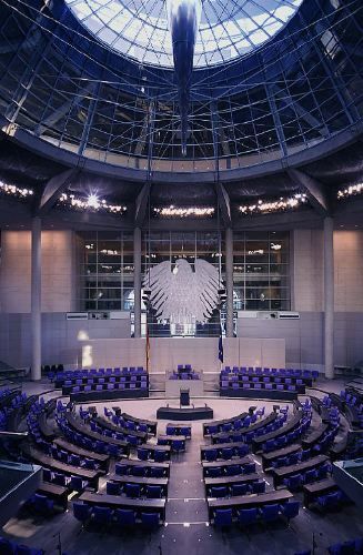 Für Norman Foster ist das neue Parlamentsgebäude das Symbol einer aufgeklärten demokratischen Gesellschaft. Deshalb können die Besucher durch die Glaskuppel in den Parlamentssaal blicken: Der Souverän erhebt sich über den Bundestag und schaut seinen Volksvertretern kontrollierend bei der Arbeit zu - ein zunächst bestechender Gedanke. Vielleicht aber eine romantisch-anachronistische Vorstellung von parlamentarischer Demokratie, bedenkt man, daß sich die Abgeordneten durch den Fraktionszwang zunehmend selbst entmachten und wichtige Entscheidungen an anderer Stelle gefällt werden, nur nicht im Bundestag. „Es kann in der Tat sein, daß ein durchsichtiges Glasrestaurant sehr viel stärker zur Trivialisierung beiträgt als zur Transparenz“, so die These des Berliner Staatsrechtlers Ulrich Preuß, „denn man kann den Eindruck erwecken, als sei politische Macht etwas, das in einem physischen Sinne durchsichtig gemacht werden kann. In einer Demokratie geht es sicher darum, politische Herrschaft aufzuhellen, aber das ist nur durch Kommunikation möglich, durch Begriffe, durch Sprache. Politische Macht ist nicht unbedingt visualisierbar.“