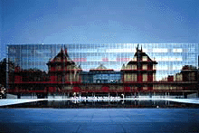 Nun darf das vom Mief der Zeit befreite Museum ganz selbstverliebt mit seinem Spiegelbild auf der Fassade des neuen Hauses kokettieren. Dieses stellten die Architekten im Abstand von gut dreissig Metern der Südfassade des Palais entgegen, just an der Stelle, wo Bérard & Delmas 1895 einen nie realisierten Ergänzungsbau geplant hatten. Schaut man nun aus dem Museum auf diesen Verwaltungsbau, so täuscht dessen Glashaut dem Betrachter gleichsam eine Vision der einst geplanten Ergänzung vor.