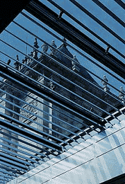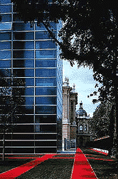 Das gläserne Haus von Ibos und Vitart zählt nicht zu jenen stümperhaften Spiegelschränken, die seit Jahren auch Frankreichs Städte verunstalten. Vielmehr handelt es sich dabei um eine ebenso ironische wie poetische Brechung des Themas. Die Glashülle und die Geschossflächen werden von einer einzigen, leicht sichelförmigen Betonwand getragen. Diese tritt durch die Fensterfront zum Hof hin als pompejanisch rote Fläche mit goldenen Rechtecken in Erscheinung und verleiht ihm eine heitere, dynamische Atmosphäre. Sie ist mit ihrem Rot und Gold aber auch eine Anspielung auf die Altmeistergalerien des Museums und zugleich Hintergrund für die setzkastenartige Bühne, auf der man die Museumsangestellten auftreten und verschwinden sieht.
