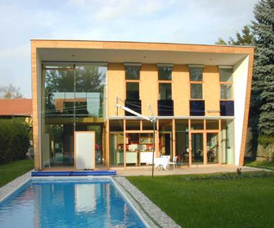 Das kompakte Haus erfüllt mit einer Reduzierung der Wärmeverlustflächen nach Norden, Westen und Osten und einer Maximierung der Wärmegewinnflächen durch größtmögliche Verglasung nach Süden mit einfachen Mitteln den Niedrigenergiestandard. Dennoch bleibt das Wohnen zur Straßenseite hin nicht völlig abgeschottet.