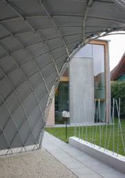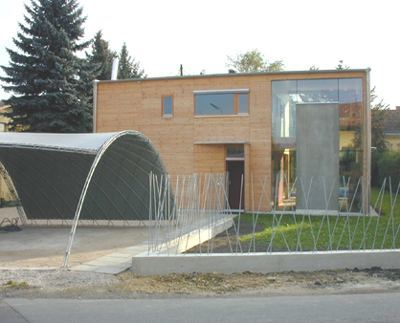 Zum Schluss wurden aus den gewölbten Netzflächen die benötigten Öffnungen geschnitten und Konstruktion mit einer silberfarbenen Lastwagenplane überdeckt. Beim Gartenzaun legten die Architekten sogar selbst Hand an. Rippentorstahlstäbe wurden einer choreographischen Inszenierung gleich im Betonfundament verankert und bilden eine zarte Barriere. Dem Ankommen, Sich- Zurückziehen, Sich-im-Raum-Entfalten und der Aktivität im Freien haben die Architekten eine sorgfältig auf Bewohnermentalität und Gegend abgestimmte Kulisse geschaffen. Das „Haus Isolde“ ist zwar kein Ferienhaus, aber ein Ort, in dem das Wohnen als Freizeitbeschäftigung bewusst genossen werden kann.