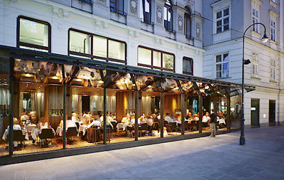 Holz, Leder und Glas, auch in Form von Spiegeln, darauf läßt sich die Materialsprache des „Fabios“ im wesentlichen reduzieren. Vor allem das Glas drängt sich straßenseitig sehr signifikant ins Bild. Denn das Lokal, das sich über zwei Liegenschaften erstreckt, nützt einen Rücksprung in der bestehenden Bauflucht für einen etwa drei Meter tiefen Glasvorbau aus. Daß es dafür eine Genehmigung gab, ist bemerkenswert und wohl auch dem routinierten Baumanagement der Werkstatt Wien zu verdanken. Tatsache ist jedenfalls, daß die neue Glasfront ein architektonisches Signal setzt, das den Tuchlauben an dieser Stelle ausgesprochen gut tut - und das bei jedem Wetter, also auch jetzt im Sommer, wenn die Glasscheiben hochgeklappt sind.