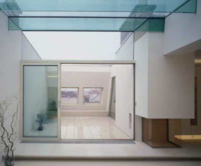 Die besondere Atmosphäre der Wohnung rührt von einem an sich einfachen, in der Ausführungspraxis aber feinste Justierung und strenge Konsequenz verlangenden, Gestaltungsmittel: einer farblich einheitlichen Oberfläche in dezentem Perlweiß. Teppich-und Kalksteinböden, hochglanzlackierte Holzeinbauten, Bad und Küchenoberflächen sowie Wände und Decken sind in diesem Farbton gehalten. Unterstützt durch die wohl durchdachte Lichtführung erreichten MARTERERMOOSMANN mit diesem restriktiven Nichtfarbkonzept eine elegante Grundstimmung mit ätherischem Touch.