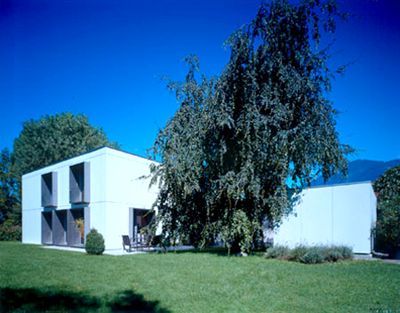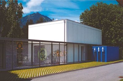 Die Aussenwände, ein Holzelementbau mit 36 cm starker Isolierung, werden inklusive Aussenhaut, Holzfenstern, Verglasung, Vorsatzrahmen und fertiger Innenschale komplett vorgefertigt. Die Aussenwände sind statisch nicht beansprucht, weshalb sich der Holzanteil auf ein Minimum reduzieren lässt. Dadurch kann die Energie- und Kosteneffizienz auf ein Maximum gesteigert werden. Die hochdruckbeständige, schlag- und kratzfeste Aussenhaut besteht aus geklebten grossformatigen Platten.