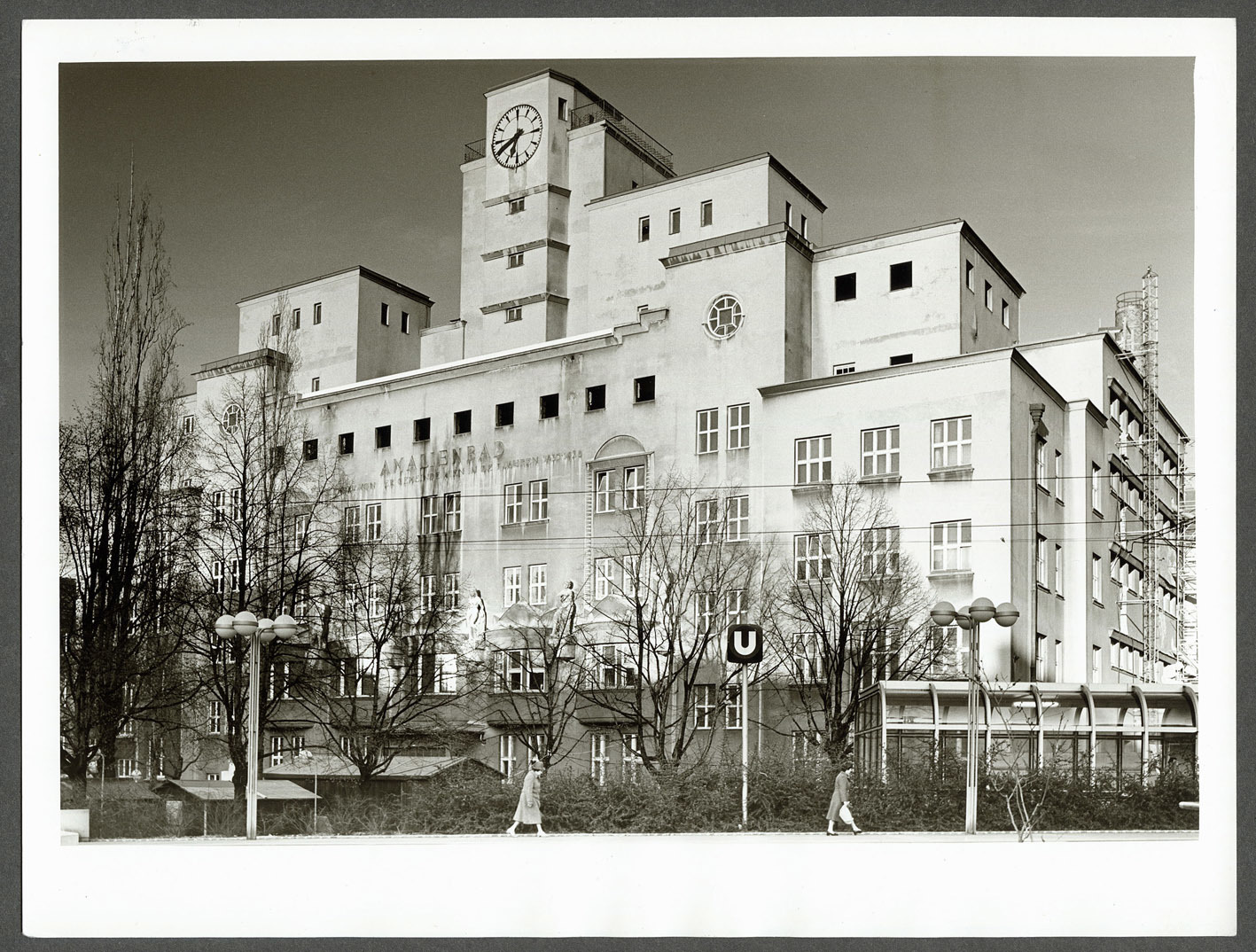 Der 10 m hohe Sprungturm aus Stahlbeton wurde neu gebaut und das in früheren Zeiten noch öffenbare Glasdach wurde nun fix geschlossen. Ebenso wurden Teile der vorderen Etagen, wo sich die Brause- und Wannenbäder befanden, zu Büros bzw. in ein physikalisches Labor umgewandelt.