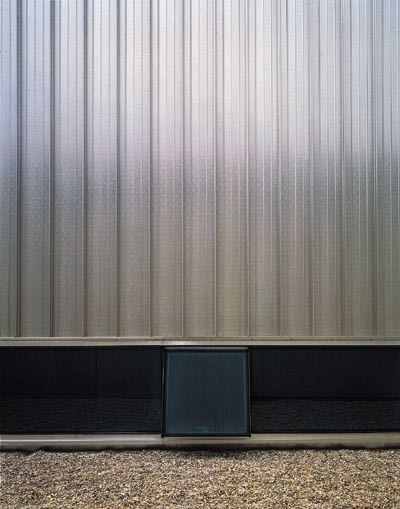 Die Rampe bildet den Raum für die Passegiata, das Gehen zwischen den Stationen der Kunstbetrachtung. Der Ausstellungsraum in der Box ist unspezifisch weiß, mit matter Lichtdecke. Am Boden kein hölzernes Parkett sondern glatt gestrichener Betonestrich, gespachtelt, von mildem Grau. Der Raum ist hoch und lang. Grundrißproportionen etwa zwei zu fünf, nur geringfügig breiter als hoch.