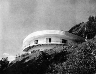 Die locker angelagerten Wohnräume öffnen sich in weichem Schwung völlig in den Außenraum. Welzenbachers spezifischen Beitrag zur europäischen Moderne ist die dynamische, auf Bewegung und Blickführung im Raum gerichtete Interpretation der Topographie: