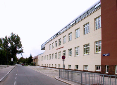 Der neue Baukörper, der wie im Vorbeifliegen auf dem bestehenden Gebäudeteil entlang der Josef Sickinger-Gasse Station macht, kragt als leichte und transparente Struktur über dem abgestuften Hauptflügel des Bestands aus und fügt sich dennoch behutsam in das gewohnte Bild des Sockelbaus, dessen grosszügige Dimensionierung und Orientierung (gemessen an den heutigen Schulbau-Standards) immer noch als beispielhaft und visionär gelten können. Obwohl weder in formaler noch in materieller Hinsicht zwischen Alt- und Neubau harmonisierende Übereinstimmungen gesucht wurden, scheinen hier zwei unterschiedliche Bauphasen und -gesinnungen eine friedliche Koexistenz zu führen.