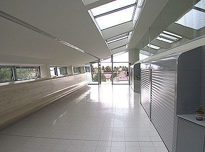 Die neuen 5 Klassen am Dach zeigen Präsenz und Zurückhaltung zugleich, und die Frage - welcher Bauteil ist hier „Wirt“, welcher „Gast“ - ist bei dieser Sanierung und Erweiterung wohl stets mit Leichtigkeit geklärt. (Text: Gabriele Kaiser)