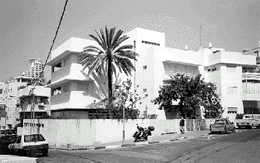 Ein Beispiel für eine völlige Entstellung ist das Haus Engel von Ze’ev Rechter. Bei dem 1933 errichteten Gebäude, das einen Innenhof dreiseitig um-faßt, machte sich der Einfluß von Le Corbusier insofern bemerkbar, als der Gebäudeteil am Rothschild-Boulevard - als Neuerung in Tel Aviv - auf Pilotis schwebte, um den Hof für die kühlenden Meereswinde zu öffnen. Nicht nur diese typische freie Erdgeschoßzone ist heute zugemauert, auch die Balkone an der Stirnseite sind geschlossen, und der ursprünglich helle Verputz ist mittlerweile sehr dunkel. Die helle Oberfläche brachte die Vorsprünge und das Überlappen der verschiedenen Volumen an der Fassade aber erst deutlich zum Ausdruck. Rechter gehörte zu den prominenten Architekten, die im britischen Mandatsgebiet Palästina wirkten. In der Ukraine geboren und in Rom und Paris ausgebildet, wurde er besonders von Le Corbusier beeinflußt, der neben Mendelsohn und dem Bauhaus als Vorbild für die damalige Entwicklung fungierte.