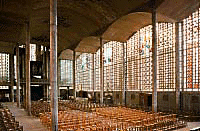 Auf den Stützen ruhen die flachen Gewölbe der Seitenschiffe, welche in der Dachzone ausgesteift wurden und quer zur Längsachse der Kirche ausgerichtet sind, um den Tiefenzug des durchgehenden Hauptgewölbes subtil zu rhythmisieren. Dieses selbst setzt niveaugleich mit der Scheitelhöhe der Seitenschiffgewölbe an, was eine leichte Erhöhung des Raumes bewirkt und das Mittelschiff zusätzlich auszeichnet. Indem Perret den Fussboden vom Eingang her Richtung Chorraum nach Art eines Auditoriums absenkte, orientierte er die Gemeinde auf den Altar als liturgisches Zentrum.