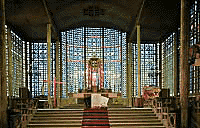 Durch die ornamentale Verwendung der Formelemente ergeben sich Kreuzformen, in deren Mitte sich jeweils ein Bildfeld befindet. Maurice Denis entwarf die Bildszenen des Marienlebens, er war aber auch für die Farbgestaltung der ungegenständlichen Fensterflächen verantwortlich. Bleiben die Betonteile der Fassaden beim Blick von aussen bestimmend, so lösen sich die Wandpartien oberhalb des Sockels im Inneren, das zum Altar hin leicht abfällt, vollends in Licht auf. Perrets Bau von 1922/23 avanciert zu einem Reflex des 20. Jahrhunderts auf die Lichtvisionen Abbé Sugers, welche sich in Saint-Denis materialisierten und damit die Epoche der Gotik einleiteten.