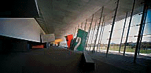 Durch die schlanken Säulen, die das stromlinienförmig gewölbte, fast unwirklich dünne Dach weniger zu tragen als vielmehr am Boden festzuzurren scheinen, entsteht jener schwebende Eindruck, der dieser Megastruktur etwas Irritierendes verleiht. Dies wird dadurch noch verstärkt, dass nirgendwo am Gebäude die tektonischen und strukturellen Zusammenhänge offen dargelegt werden. Das Spiel mit ebenen Elementen und feinen Oberflächenhäuten entfaltet seine suggestivste Wirkung in dem als dreidimensionale Collage inszenierten Erschliessungskorridor, aber auch im Foyer, wo es die Knochendes Vorgängerbaus unter einem von Francis Bacon inspirierten Farbakkord raffiniert verbirgt.