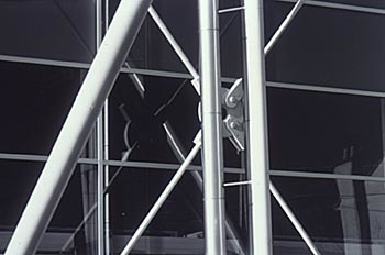 Es lassen sich zwar immer wieder faszinierende Bilder ausmachen: Etwa die schöne Regelmäßigkeit der „sieben magischen Treppen“ (Architekt Berger) an der Nordfassade; oder die Differenzierung in der Fassade durch das unterschiedliche Glas; auch daß der „industrielle“ Grundton bis hin zur Möblierung konsequent durchgezogen ist, tut gut - selbst wenn hier die Sitze nicht weich gepolstert sind, sondern aus Metall.