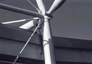 Die beiden Bauwerke konkurrenzieren einander letztlich überhaupt nicht, sie sind vom industriellen Grundton her aufeinander eingestimmt und ansonsten so unterschiedlich ausformuliert, daß dadurch sogar eine gewisse Spannung entsteht. Die Kleinheit der einen Halle steigert die Wirkung der großen. Dabei hatte ursprünglich, nach dem Wettbewerb, ein Kritiker geschrieben, daß das Projekt zwar sehr schön, aber die Konstruktion nicht realisierbar wäre. Dieses Urteil straft der Bau umso mehr Lügen, als die Konstruktion nicht nur machbar, sondern verglichen mit dem Wettbewerb auch noch minimierbar war. Alles ist ein wenig feiner, ein wenig dünner und noch viel eleganter geworden als seinerzeit geplant. Die ästhetische Kraft des Baus rührt von der Schlüssigkeit des Konzepts her und von einer sehr weit vorangetriebenen Klarheit bei der konstruktiven und architektonischen Umsetzung. Die Architekten haben sich nicht in Nebensächlichkeiten verloren. Es ist ein Haus geworden - praktisch ohne Details. Dadurch kommt auch diese Luftigkeit und Weite zustande, wo einen visuell nichts drangsaliert. Das kommt einer Wohltat gleich.