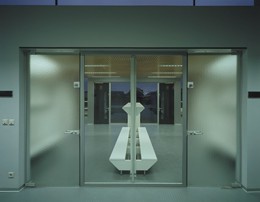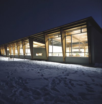 Deshalb ist auch kein Sonnenschutz erforderlich, und der wunderbare Ausblick kommt voll zum Tragen. Und doch - auch eine kleine Besonderheit an diesem Konzept - liegen die Gruppenräume nicht vollständig im Schatten. Im Gegenteil: Betritt man sie an einem sonnigen Tag, ist man von der Lichtstimmung in diesen Räumen beeindruckt - und von den Sonnenstrahlen, die durch schmale Oberlichtbänder ganz oben und an der Südwand hereinfallen.