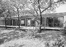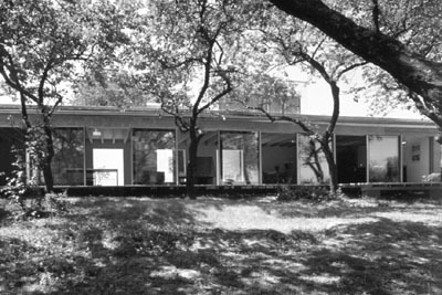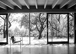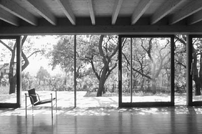 So hätten wir alle „Stilelemente“ beisammen, die das Haus jener „neuen Einfachheit“ zuordenbar machen, von der eingangs die Rede war: längsquadrische Schachtel oder Kiste, emotionslose (coole) Reihung, raumhohe Fassadenöffnungen im Schachbrettversatz (gleich-gültig), durchgehender Raum mit Schiebewänden (Loft).